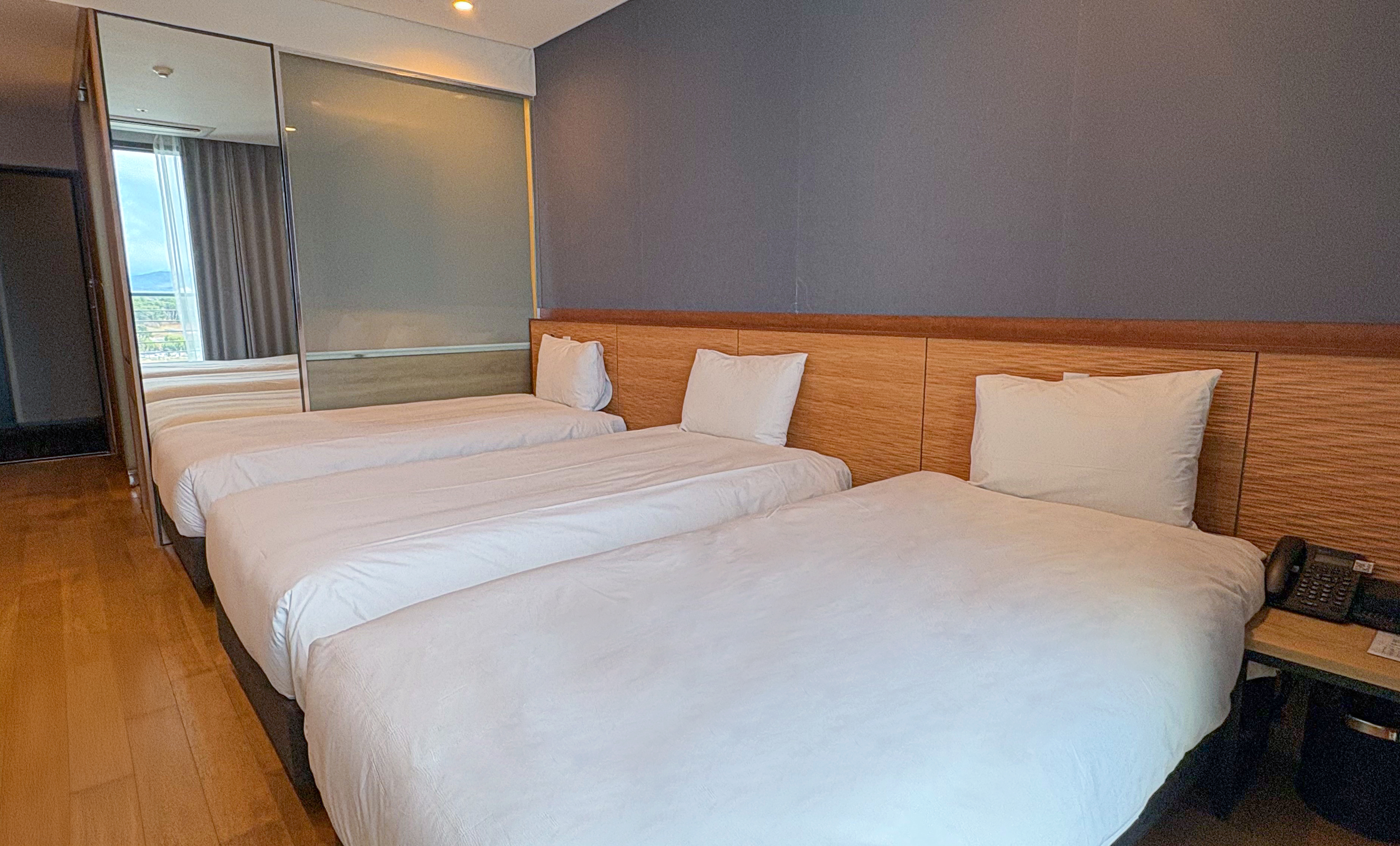 가족, 친구들과 함께 떠나온 여행에 더없이 편안한 공간입니다. 쾌적한 밤을 위해 준비된 3개의 싱글 침대